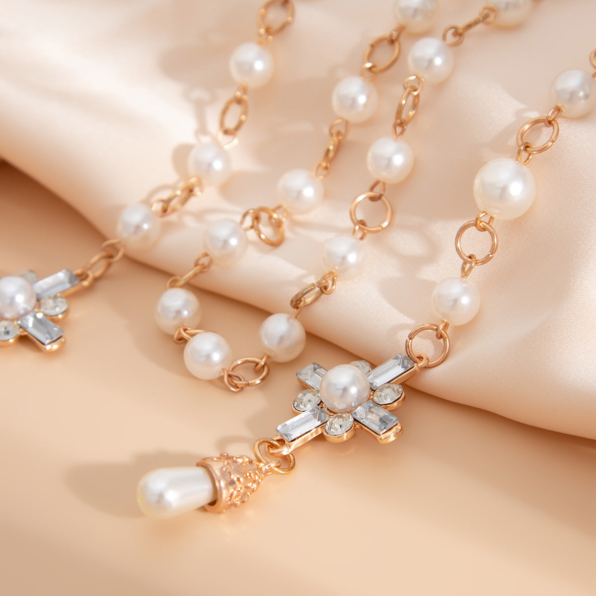 Zilora – Perlenkette mit Kreuz & Tasseln 💖 Modernes und edles Set
