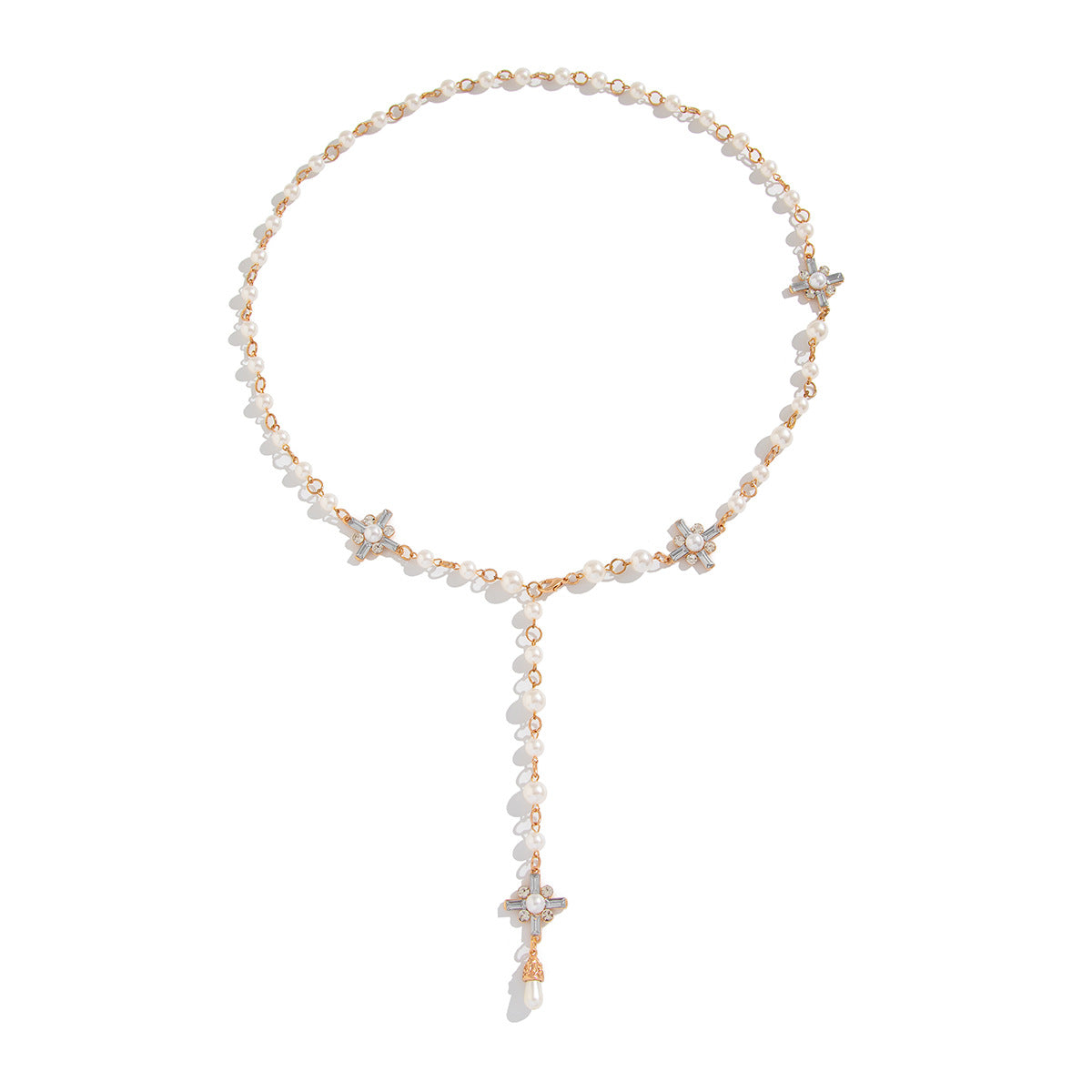 Verleihe deinem Look eine edle Note mit der Zilora Kreuz-Perlenkette. 🌟 Die Kombination aus hochwertigen Kunstperlen, glänzendem Gold und funkelnden Details verleiht deinem Outfit eine luxuriöse Ausstrahlung. Die eleganten Tasseln und das Kreuz-Design machen diese Kette zu einem vielseitigen Highlight – perfekt für Alltag und besondere Anlässe. 💖