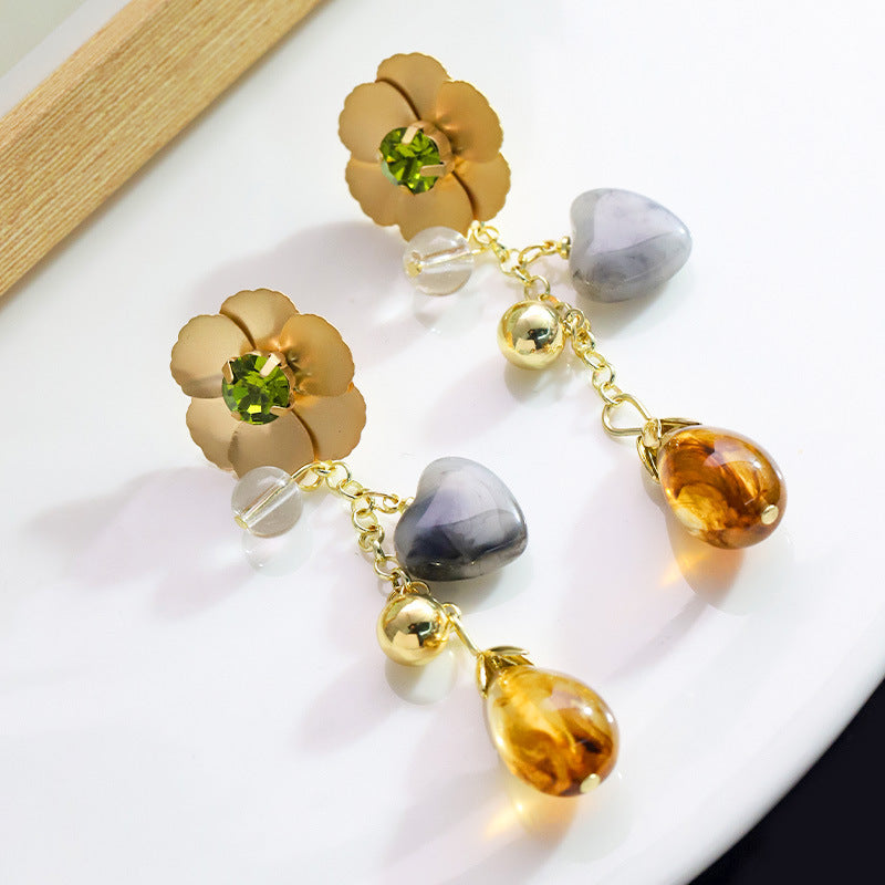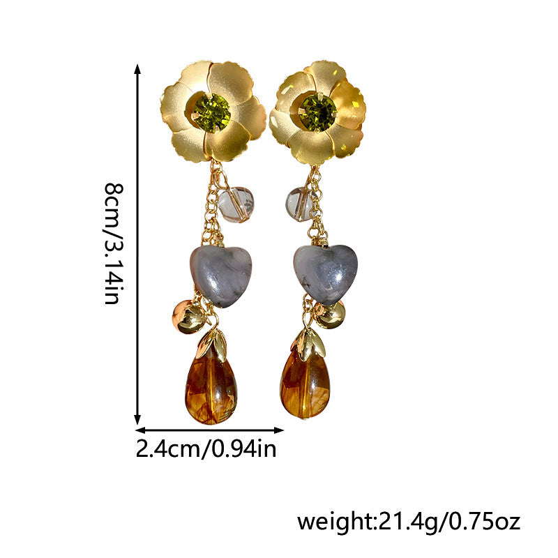 Diese hochwertigen Retro-Ohrhänger vereinen romantisches Vintage-Flair mit luxuriöser Eleganz. ✨ Die herzförmigen Tropfen aus feinstem Harz schimmern sanft im Licht, während filigrane Metallblüten für eine edle Note sorgen. 💎 Die feinen Quasten verleihen jedem Look eine anmutige Bewegung – perfekt für elegante Abende, besondere Anlässe oder als stilvolles Statement im Alltag.