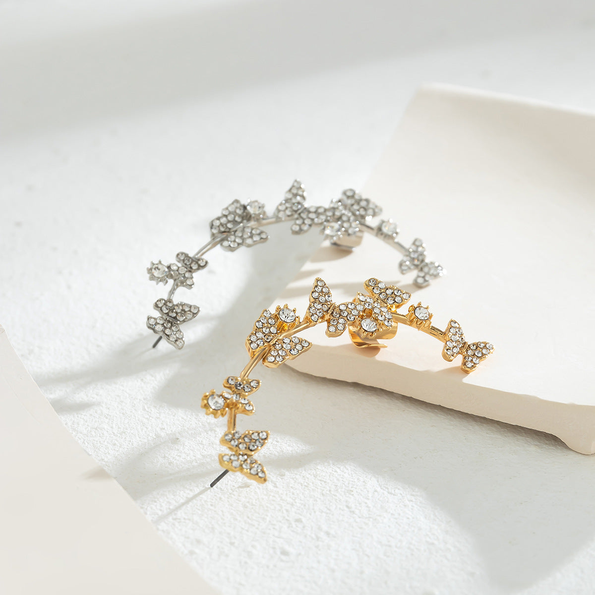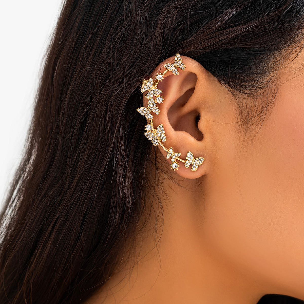 Ein zauberhaftes Schmuckstück, das Natur und Eleganz vereint. ✨ Dieser kunstvolle Ear Cuff begeistert mit einem schimmernden Schmetterling, verziert mit funkelnden Wasserdiamanten. 💎 Sein leichtes und doch luxuriöses Design schmiegt sich sanft ans Ohr und sorgt für einen atemberaubenden Blickfang – ganz ohne Ohrloch! Perfekt für glamouröse Abende, besondere Events oder als magisches Highlight, das deinem Stil eine märchenhafte Note verleiht. 🦋🌿